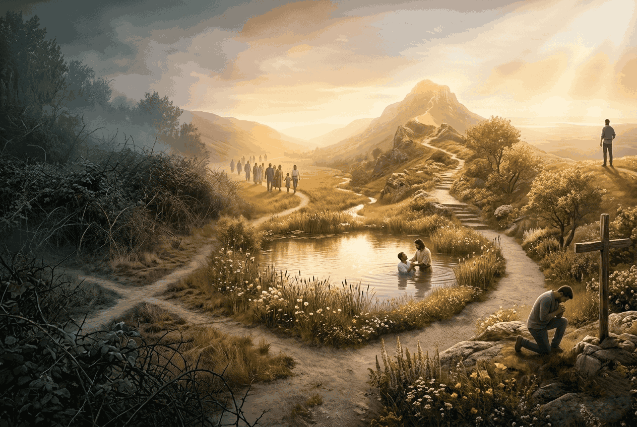 رحلة الإيمان تنقلنا من التيه والضياع إلى هوية متجذّرة في الله. نكتشف أولًا حاجتنا للخلاص بسبب الخطية، ثم تُقدّم لنا النعمة كعطية مجانية لا نستحقها.